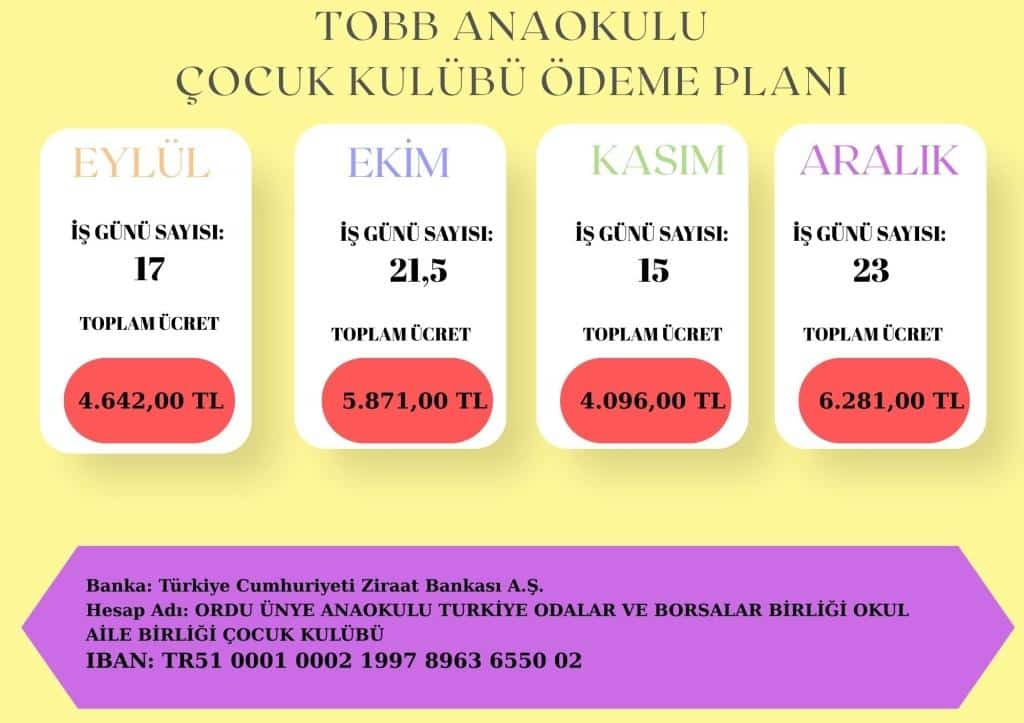 Hesap Adı: ORDU ÜNYE ANAOKULU TURKİYE ODALAR VE BORSALAR BİRLİĞİ OKUL AİLE BİRLİĞİ ÇOCUK KULÜBÜ